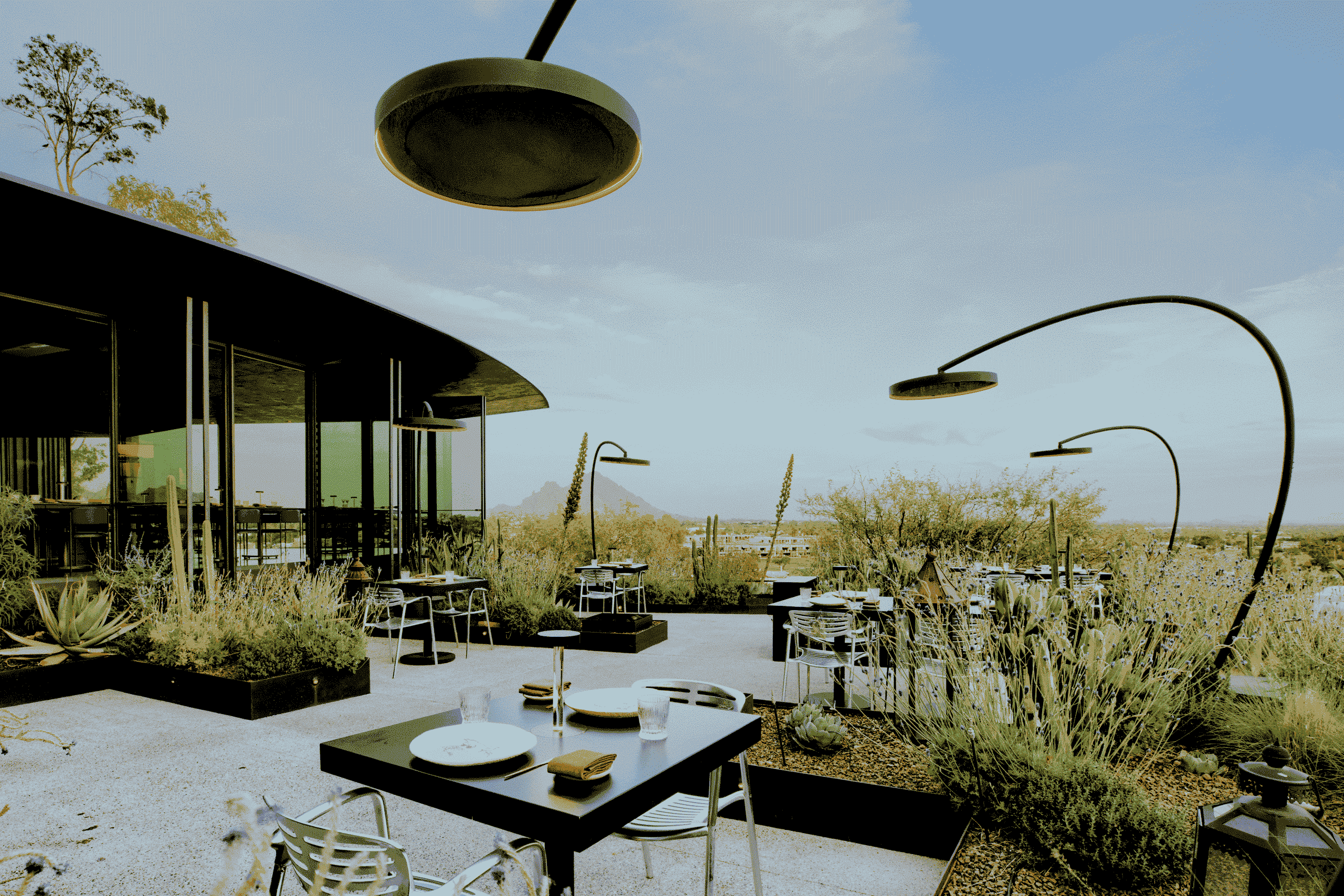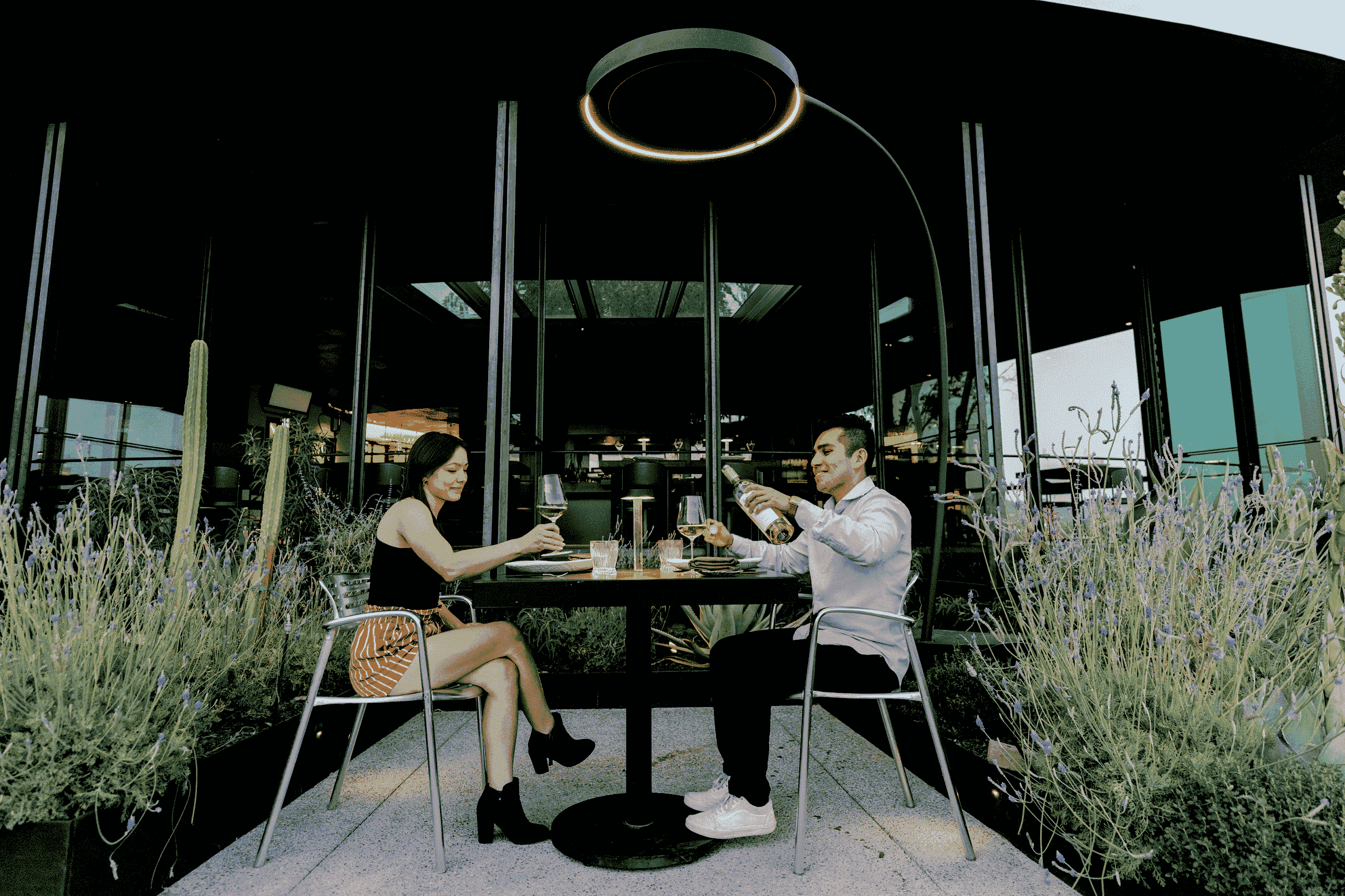 Because of the historic nature of the Wrigley and its breathtaking view of the Phoenix skyline, finding a heating solution that didn’t take away from the design and atmosphere of the space was crucial. “We were very aware that Bromic has the best design in heaters,” Wendall notes. Working alongside the Bromic heating experts, Burnette was presented with the new Eclipse Smart-Heat Freestanding – the electrical freestanding unit whose sleek, modern design is perhaps only surpassed by the innovative inclusion of dimmable LED lighting.